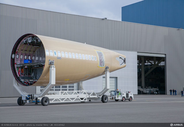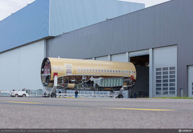 A350試験5号機の中部胴体=13年11月 PHOTO: JB.Accariez/master films/Airbus