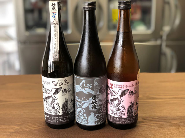 酒米の「山田錦」から作られ、精米歩合40%の「竹泉 純米大吟醸 幸の鳥」、同酒を火入れしない生原酒の状態で瓶詰めした本数限定の「竹泉 純米大吟醸 幸の鳥 生原酒」、同じく本数限定で酒米に「五百万石」を使い、江戸時代から続く「生酛仕込み」で作った原酒を熟成した「竹泉 特別栽培米 純米吟醸酒 生酛仕込み 幸の鳥 生酒」の3種。生酒には酒造年度2018年の3年熟成酒と、2015年の6年熟成がある。