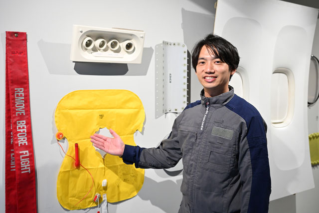 退役機のアップサイクル品を企画したJALの加藤孝弥さんは整備士として6年間従事し、2021年11月から非航空系事業を担うマイレージ・ライフスタイル事業本部のライフ・コマース事業部に在籍。異動間もないころから航空機部品のアップサイクルを提案し、社内外の協力を得て6月のイベントが実現したことから、第2弾となる今回の巡回展に発展したという。