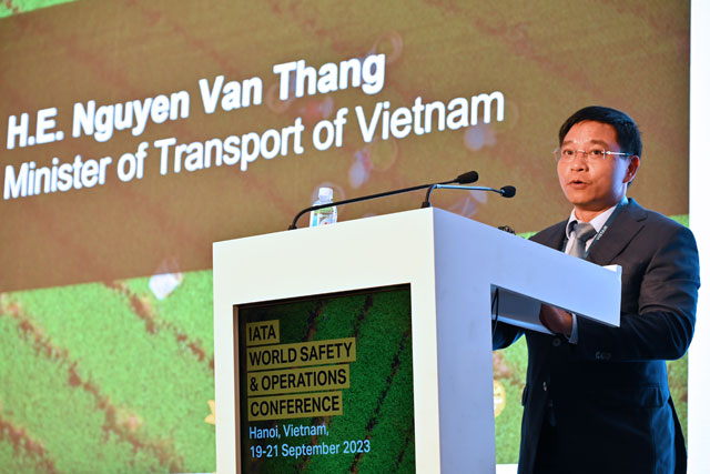 ハノイで開幕したIATAの第1回WSOCに登壇するグエン・ヴァン・タン交通運輸相=23年9月19日 PHOTO: Tadayuki YOSHIKAWA/Aviation Wire