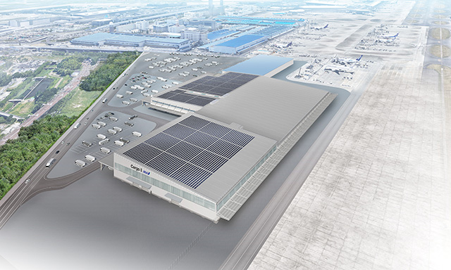 新ビルは鉄骨造の2階建で、延べ面積は約6.1万平方メートル。このうち上屋面積は約3.8万メートルとなる。輸出・輸入のほか、国内向けと三国間貨物も取り扱う。近くを通る県道44号線からアクセスできる貨物ゲートも設け、第8ビルを含めた貨物地区へのアクセス向上も図る。