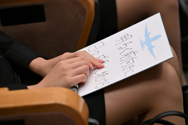 内定者の職種は、旧総合職の「グローバルスタッフ職」と自社養成パイロット訓練生の「運航乗務職」、客室乗務員の「客室乗務職」、障がい者採用の「エキスパートスタッフ職」で客室乗務員がもっとも多く、内定者の7割弱となる約420人となった。内定者たちは会場で配られた色紙に、入社にあたっての意気込みをしたためていた。