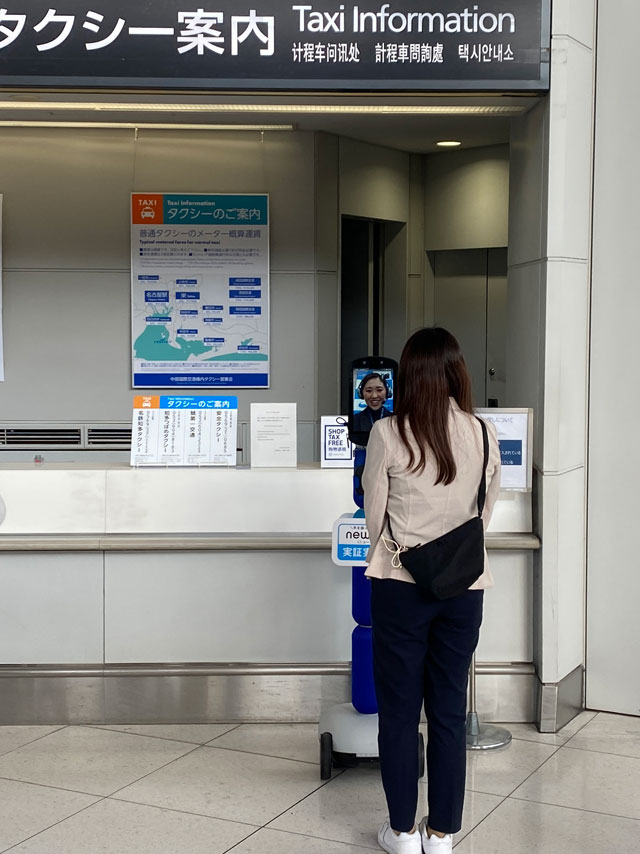 中部空港で始まるavatarinの遠隔操作ロボット「newme」を使った実証実験(同社提供)