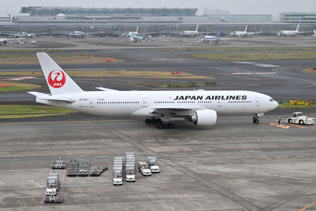 日本航空(JAL/JL、9201)が運航するボーイング777-200ER型機のうち、最後の1機となった3号機(登録記号JA703J)が11月12日、定期便の最終日を迎えた。この日最初の羽田発札幌(新千歳)行きJL505便が、定刻の午前8時15分に15番スポットから出発。那覇発羽田行きJL916便が最終便となる。