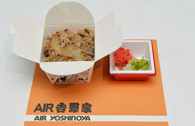 ロサンゼルス発日本行きなどで提供する「エア吉野家」=11月26日 PHOTO: Tadayuki YOSHIKAWA/Aviation Wire