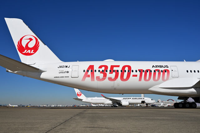 A350-1000は長距離国際線機材であるボーイング777-300ER型機の後継機。初号機は現地時間12月11日にエアバスの最終組立工場があるトゥールーズで引き渡されて14日に出発し、15日に羽田へ到着した。トゥールーズ出発時は機体後部に何も描かれておらず、真っ白な塗装だった。羽田へ到着後に実施している就航前の整備作業で「A350-1000」ロゴがデカールで描かれ、26日に初めて格納庫から外に出た。