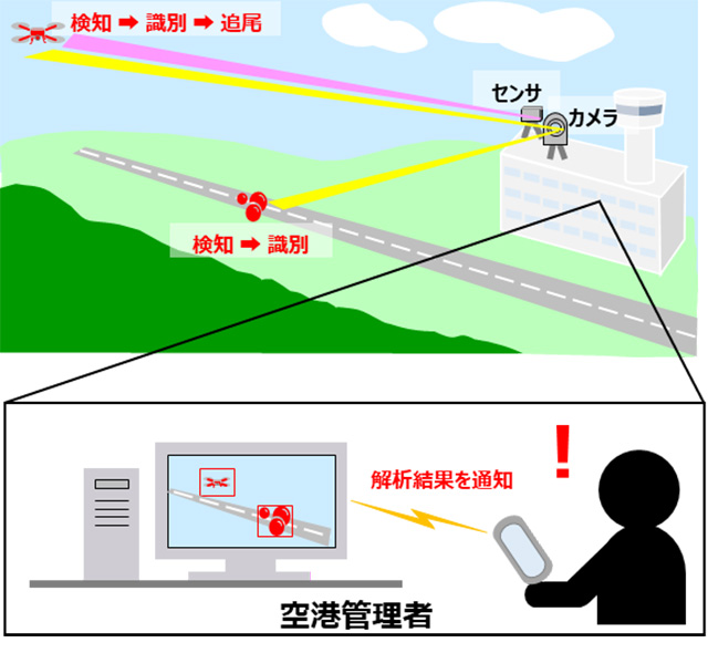 今回の実証実験では、空港内に設置した富士フイルムの遠望カメラ「SXシリーズ」で滑走路と周辺空域を撮影。NECと日立が映像データを解析し、NECは滑走路上の落下物を、日立が空域のドローンなどを検知する。実証実験を通じ、遠望カメラの効果的な設置場所の選定や滑走路上の落下物、周辺空域のドローン検知可否を検証し、監視業務の実運用への課題を洗い出す。