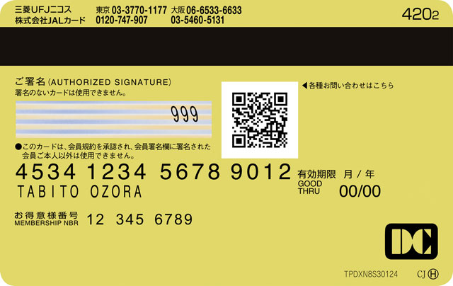 カード番号や有効期限は裏面に記載するJALカード(同社提供)
