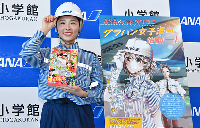 航空業界を舞台とした漫画が、2月13日から小学館の月刊誌『ベツコミ』で連載を開始した。主人公はグランドハンドリング(グラハン、地上支援)として働く女性で、全日本空輸(ANA/NH)を傘下に持つANAホールディングス(ANAHD、9202)が制作に全面協力した。連載開始を記念し、羽田空港でANAのグラハンスタッフらが会見した。
