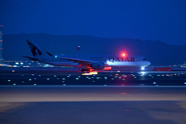 初便の関西行きQR802便はドーハを現地時間1日午前1時7分に出発し、関空には同日午後4時4分に到着。ドーハ行きQR803便は午後6時5分に出発して、2日午前0時33分に到着した。