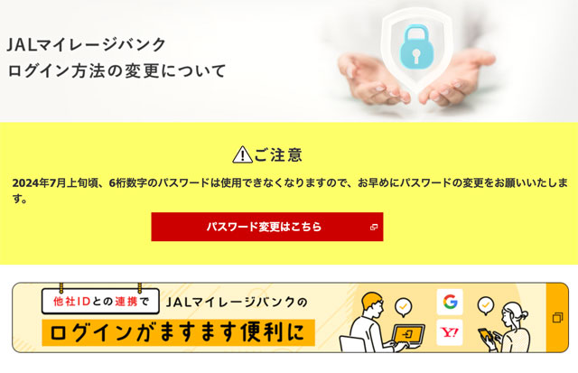 JALマイレージバンクのログイン方法を変更するJAL(同社サイトから)