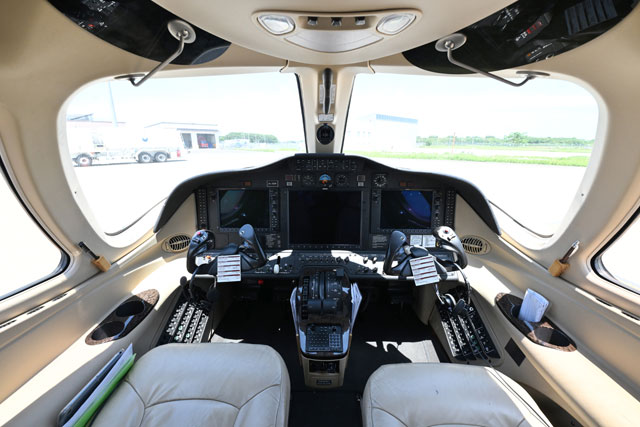 茨城空港に駐機されたマイクロジェットのムスタングのコックピット=24年5月25日 PHOTO: Tadayuki YOSHIKAWA/Aviation Wire