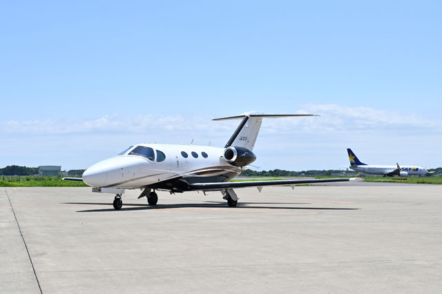 飛来したのは、航空大学校の卒業生が起業したBJチャーター会社のマイクロジェット(東京・新宿)が運航する双発ジェット機セスナC510「サイテーション ムスタング」(登録記号JA123F)。かつてスカイマーク(SKY/BC、9204)の茨城初便を担当した経験を持つ機長が操縦桿を握り、午前10時19分ごろ到着した。羽田を離陸後の飛行時間は約30分で、出発から離陸までの時間を合わせると50分ほどだった。東京駅から茨城県の県庁所在地である水戸へ鉄道で向かう場合は特急で約1時間30分かかり、自動車で同じ区間を高速道路を利用した場合は約1時間40分ほどになる。