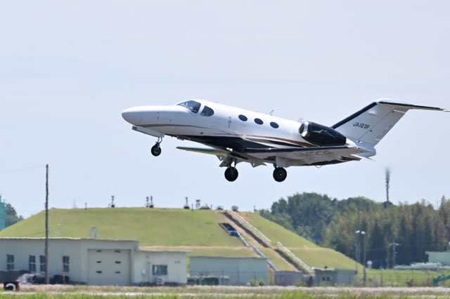 茨城空港を出発するマイクロジェットが運航する羽田行きのビジネスジェット「セスナ サイテーション ムスタング」=24年5月25日 PHOTO: Tadayuki YOSHIKAWA/Aviation Wire
