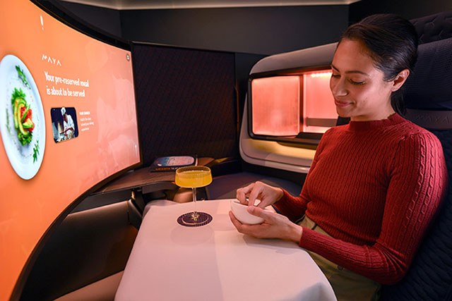 コリンズ・エアロスペースとパナソニック アビオニクスが発表した次世代ビジネスクラス「MAYA」(パナソニック提供)