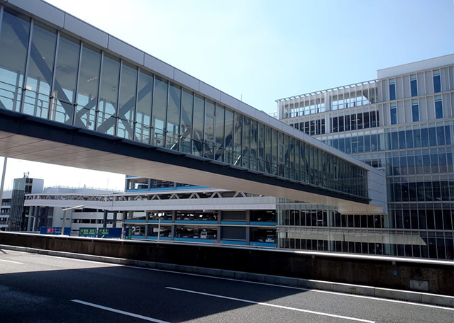 ターミナルと駐車場を結ぶラディクールを施工した連絡橋(日本空港ビル提供)