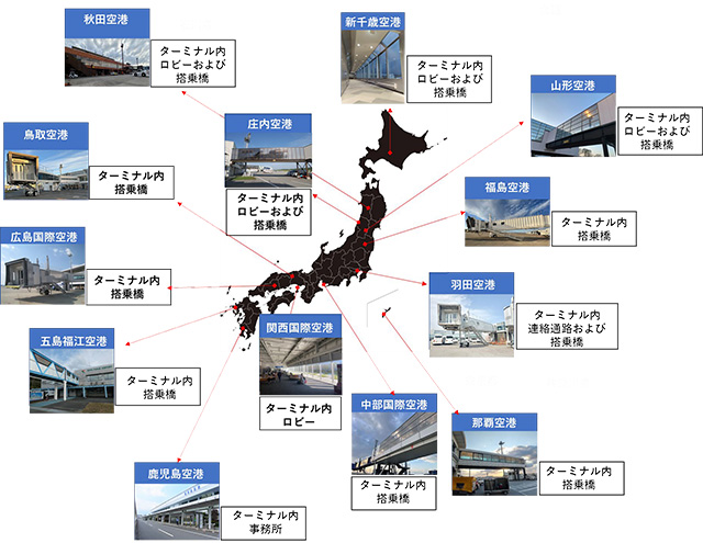 現在は羽田のほか、中部や新千歳、関西、那覇など、国内の各空港で導入が進んでいる。空港のほか、通信会社のキュービクル(高圧受変電設備)やホテル、病院、学校、飲食店など各施設へ施工した。