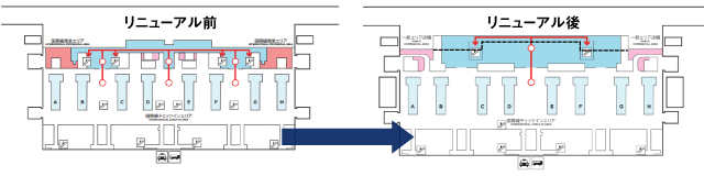リニューアルは現在フェーズ2まで完了し、フェーズ1にあたる国内線の新エリアは2022年10月に、フェーズ2にあたる出国審査場の中央集約などは2023年12月に、それぞれオープン済み。その後のフェーズ4では、2026年秋ごろに2階の国際線出発エリア南北にある商業施設の運用を開始し、工事を終える。