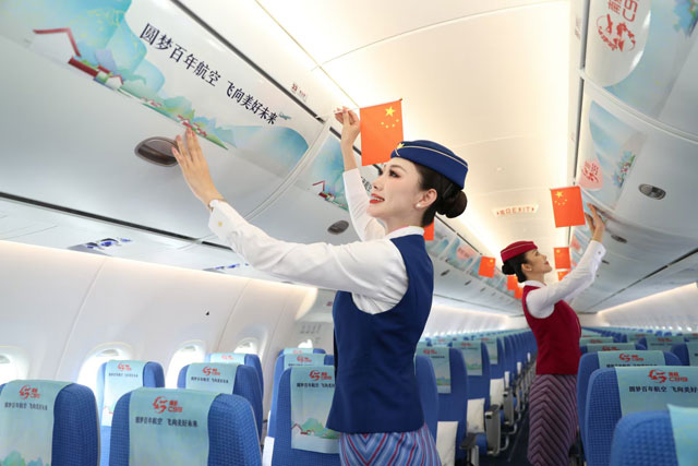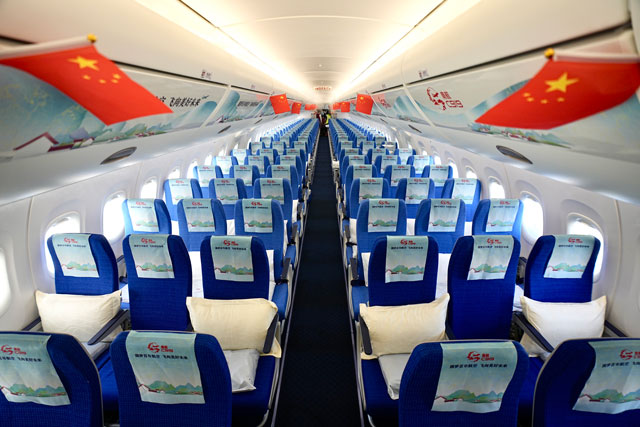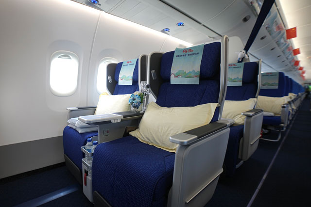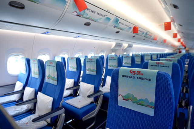 中国南方航空のC919初号機のビジネスクラス(同社提供)