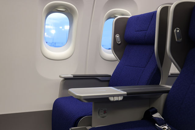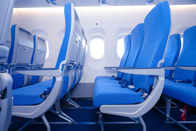 座席数は3クラス164席で、ビジネス8席、プレミアムエコノミー18席、エコノミー138席。ビジネスクラスのシートは1列2-2席配列で、座席の横幅は21インチ。プレミアムエコノミークラスは3-3席配列で、シートピッチは33インチ、エコノミークラスも3-3席配列となる。人間工学に基づいたデザインを採用し、各クラスには充電用ポートやマガジンポケットなどが備えられた。オーバーヘッドビン(手荷物収納棚)は側面が緩やかにカーブした形状で、天井高は2.25メートル、通路幅は48.26センチとなる。