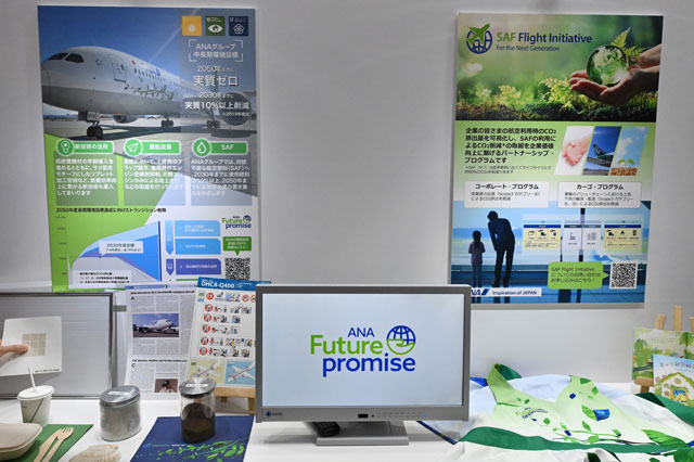 国際航空宇宙展ANAブースの環境関連の展示=24年10月17日 PHOTO: Tadayuki YOSHIKAWA/Aviation Wire