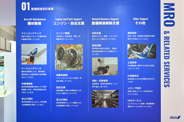 国際航空宇宙展ANAブースの整備関連受託事業の展示=24年10月17日 PHOTO: Tadayuki YOSHIKAWA/Aviation Wire