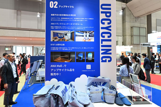 国際航空宇宙展ANAブースのアップサイクル関連の展示=24年10月17日 PHOTO: Tadayuki YOSHIKAWA/Aviation Wire