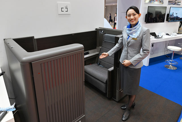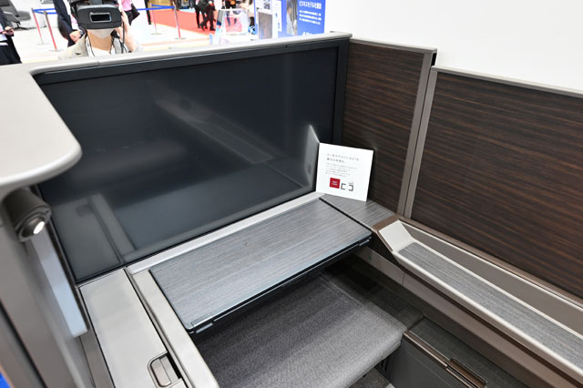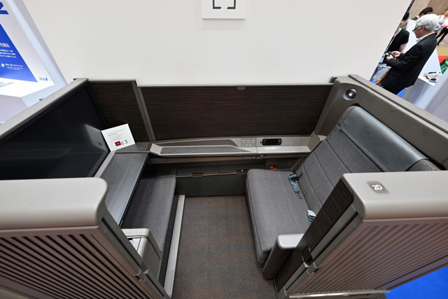 ANAによると、国際航空宇宙展への出展は整備部門が担当。通常、こうしたイベントはマーケティング部門が主体になることが多いが、SJAC主催のイベントということもあり、日ごろから重工各社などとのつながりがある整備部門が、他部門と調整して展示内容を決めたという。モックアップは普段のイベントで出展が多い個室タイプのビジネスクラス「The Room」ではなく、展示機会が少ないファーストクラスを選んでみたという。