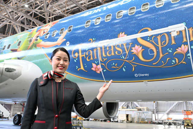 特別塗装機は、アレンデール城やラプンツェルの塔、フック船長のジョリー・ロジャー号など、それぞれのエリアの象徴的な場所を背景に、アナやエルサ、ラプンツェル、ピーターパンがヨコ約34メートル、タテ約5メートルの大きさで208枚のデカールを使って描かれ、魔法の泉が導くディズニーファンタジーの世界を表現した機体にした。