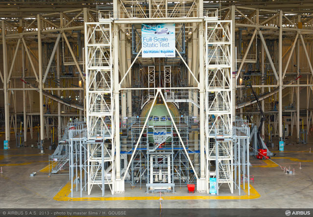 エアバスは現地時間1月13日、A350 XWBの主翼の終極荷重試験を昨年12月に実施し、成功裏に終了したと発表した。