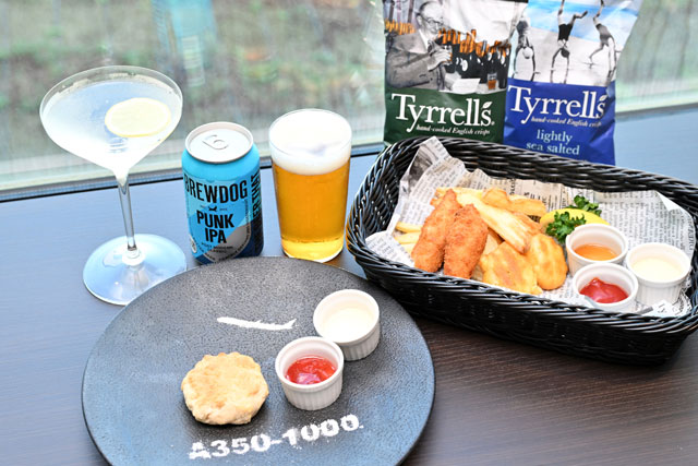 また、羽田のラウンジではロンドンにちなんだメニューを24日限定で用意。ファーストクラスラウンジでは、フィッシュ&チップスやイングリッシュスコーン、BREWDOGビール、映画『007』にちなんだカクテル「マティーニ」を提供し、ティレルのポテトチップスをファーストとサクララウンジで提供した。
