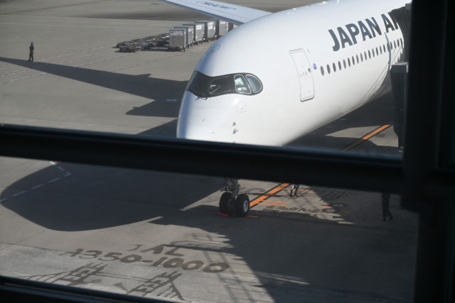 羽田空港112番スポットで出発を待つJALのA350-1000ロンドン線初便JL43便=24年10月24日 PHOTO: Tadayuki YOSHIKAWA/Aviation Wire