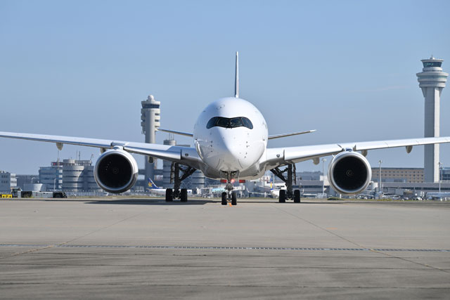 日本航空(JAL/JL、9201)の新たな国際線フラッグシップであるエアバスA350-1000型機が10月24日、羽田-ロンドン線に就航した。A350-1000の投入路線として3路線目で、1日2往復(週14往復)のうち、昼に羽田を出発するJL43/44便に投入する。JALのA350-1000が欧州へ就航するのは初めてで、欧州製の機体が里帰りする形になった。初便には20日に就航したばかりの最新6号機(登録記号JA06WJ)が使用された。