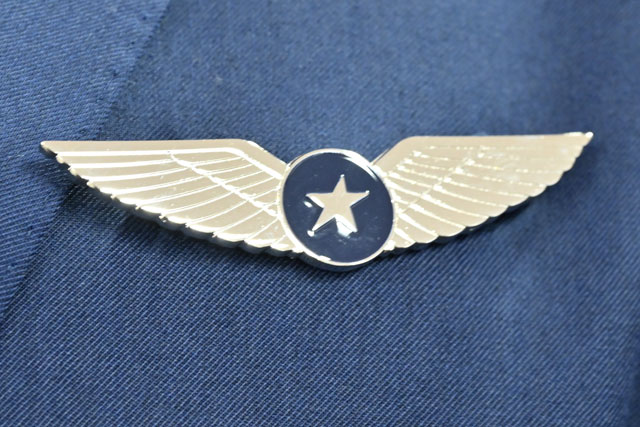 ジェットスター・ジャパンのパイロット用新制服で着用するウイングバッジ=24年11月28日 PHOTO: Tadayuki YOSHIKAWA/Aviation Wire
