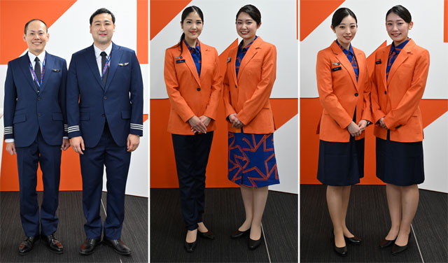 ジェットスター・ジャパン(JJP/GK)は11月28日、新制服の着用を開始した。パイロットと客室乗務員、グランドスタッフ(地上旅客係員)が着用する。今年2月にジェットスター航空(JST/JQ)を中核とするジェットスター・グループが豪州でお披露目したもので、制服の大幅刷新はグループとして初めて。キーカラーを従来のオレンジと黒から、オレンジと濃紺に改めた。
