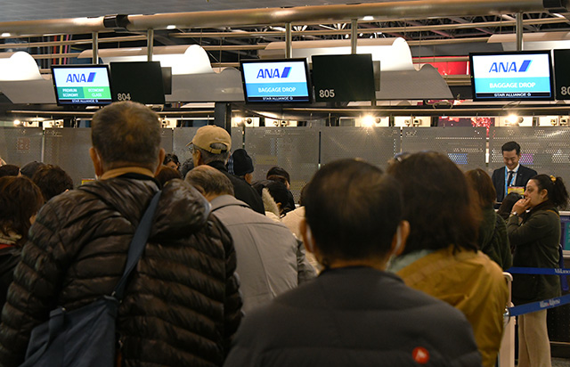 ミラノ・マルペンサ空港でANAの出発初便となるNH208便への搭乗手続きを進める利用客=24年12月3日 PHOTO: Yusuke KOHASE/Aviation Wire