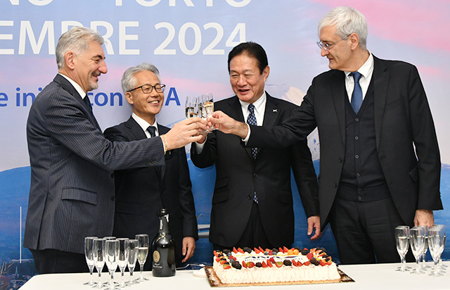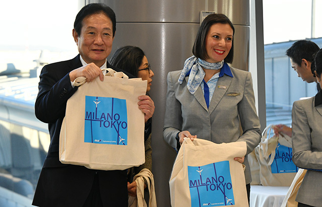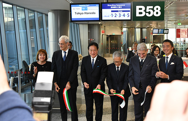 式典にはマルペンサ空港を運営するSEA空港公団のルイジ・バットゥエッロCCO(最高商務責任者)、ミラノがあるロンバルディア州のラッファエーレ・カッタネオ副知事、駐イタリア日本大使館の鈴木哲大使が出席した。
