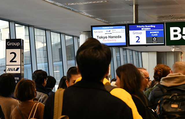 ミラノ・マルペンサ空港でANAの出発初便となるNH208便へ搭乗する乗客=24年12月3日 PHOTO: Yusuke KOHASE/Aviation Wire