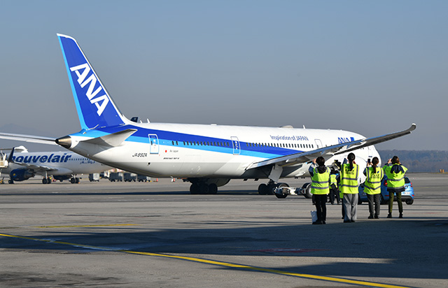 全日本空輸(ANA/NH)のミラノ発再開初便となったNH208便(ボーイング787-9型機、登録記号JA892A)が、現地時間12月3日午前に羽田へ向け出発した。ANAがミラノへ乗り入れるのは約25年ぶり。同便の出発前にミラノ・マルペンサ空港で記念式典を開き、ANAの井上慎一社長らが乗客にプレゼントを配るなどで謝意を示した。