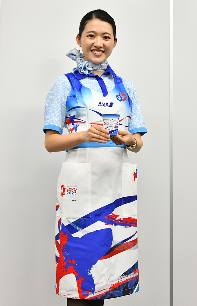ANAの「EXPO2025 ANA JET」機内で着用するオリジナルデザインのエプロン=24年12月12日 PHOTO: Yusuke KOHASE/Aviation Wire