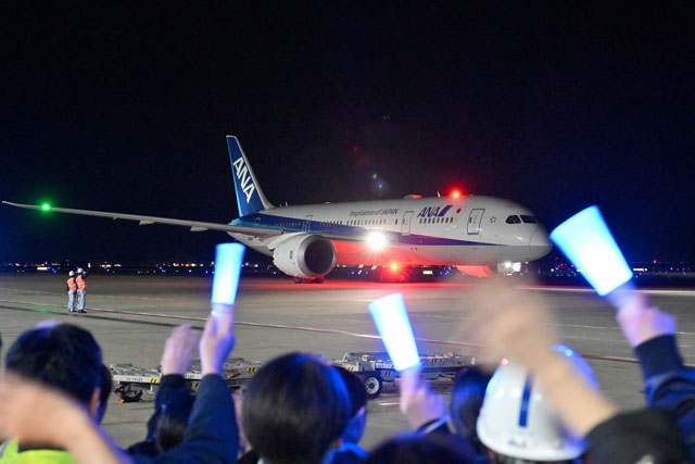 31日のストックホルム行き初便NH221便(787-8、登録記号JA814A)は乗客166人(幼児ゼロ)と乗員12人(パイロット3人、客室乗務員9人)を乗せ、73番ゲートから午前0時28分に出発し、C滑走路(RWY34R)から同49分に離陸してストックホルムへ向かった。