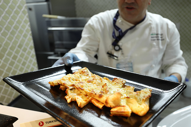 ターキッシュエアが成田空港に開設したラウンジで提供するピデ=25年2月5日 PHOTO: Kiyoshi OTA/Aviation Wire