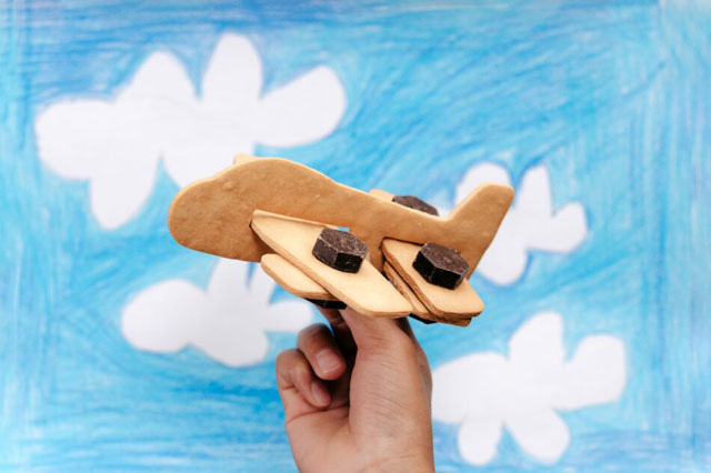 翼や機体などの部品は、バターとはちみつ風味のサブレで作られており、ボルトとナットの形をしたチョコレート製のネジで組み立てる。価格は