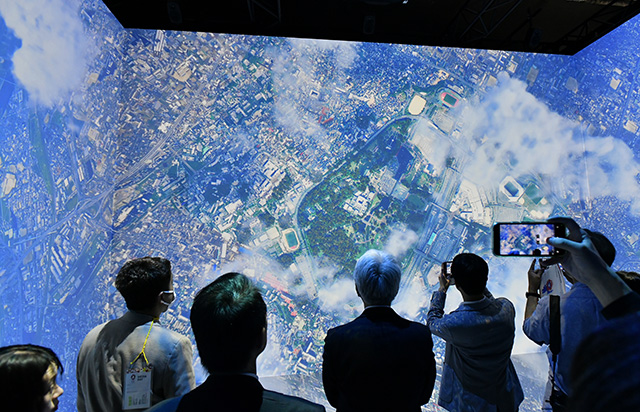大阪上空の飛行を疑似体験できるJALのイマーシブシアター「そらクルーズ」=25年4月9日 PHOTO: Yusuke KOHASE/Aviation Wire