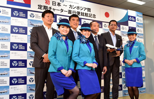 エイチ・アイ・エス(HIS、9603)などが出資するアジア アトランティック エアライン(AAQ/HB)は6月26日、カンボジアへの直行便を定期チャーターで開設すると発表した。日本とカンボジアを結ぶ直行便就航は同社が初めてで、成田-プノンペン線を9月3日から週3往復、成田-シェムリアップ線を10月2日から週4往復運航し、ビジネス客や世界遺産アンコールワットへの観光客などの取り込みを図る。