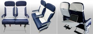 新設のプレミアムエコノミーは、シートピッチがエコノミーより10インチ広い40インチ。ビジネスと同様にタブレット端末を無償で貸し出し、アルコール類も無料としてビジネス客を狙う。また、タブレット端末を見ながら食事や仕事ができる新型トレイを採用する。