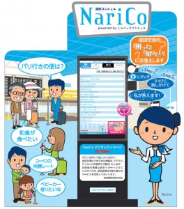 利用者は画面にタッチして、運航便の状況や施設案内など知りたいことを話しかけると、自動音声で回答する仕組み。スマートフォンアプリ「成田コンシェル NariCo(ナリコ)」の機能をデジタルサイネージで提供する。