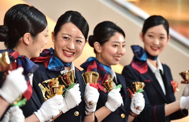 今年で20年目を迎えた、日本航空(JAL/JL、9201)の新人客室乗務員(CA)有志によるミュージックベル演奏チーム「JALベルスター」。8人のCAが10月から乗務の合間に8回練習し、11月29日と30日の函館を皮切りに、12月13日と14日に名古屋、20日と21日に札幌、23日から25日に東京で公演した。