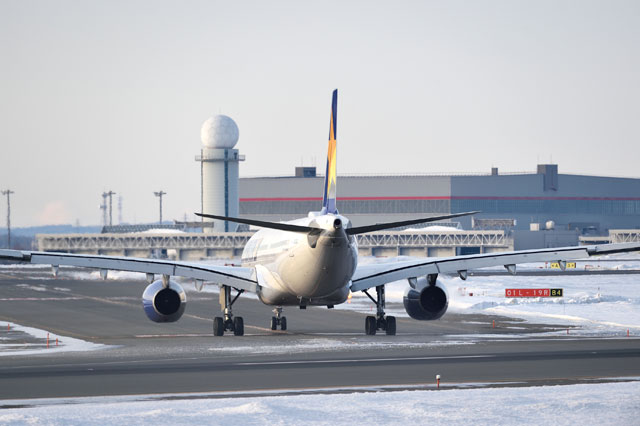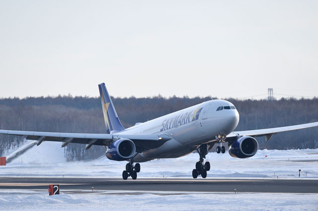 新千歳空港に着陸するスカイマーク717便のA330=1月31日 PHOTO: Daigo TAKENOBU/Aviation Wire