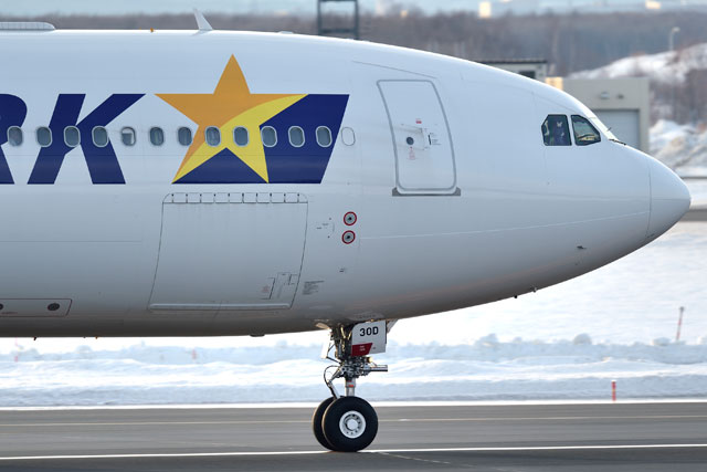 新千歳空港に着陸したスカイマーク717便のA330=1月31日 PHOTO: Daigo TAKENOBU/Aviation Wire